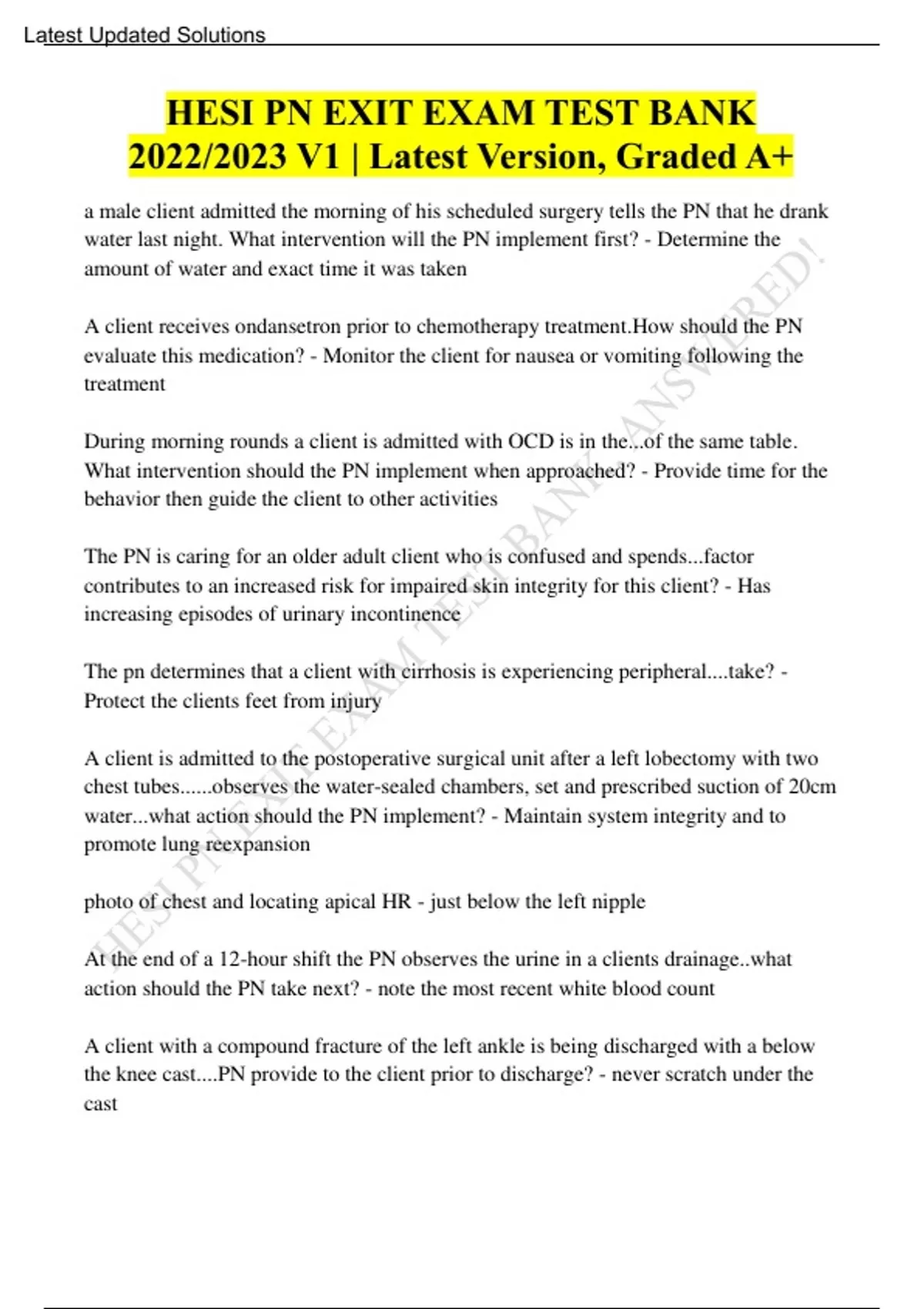 HESI PN EXIT EXAM TEST BANK 2023 V1 LATEST VERSION GRADED A+