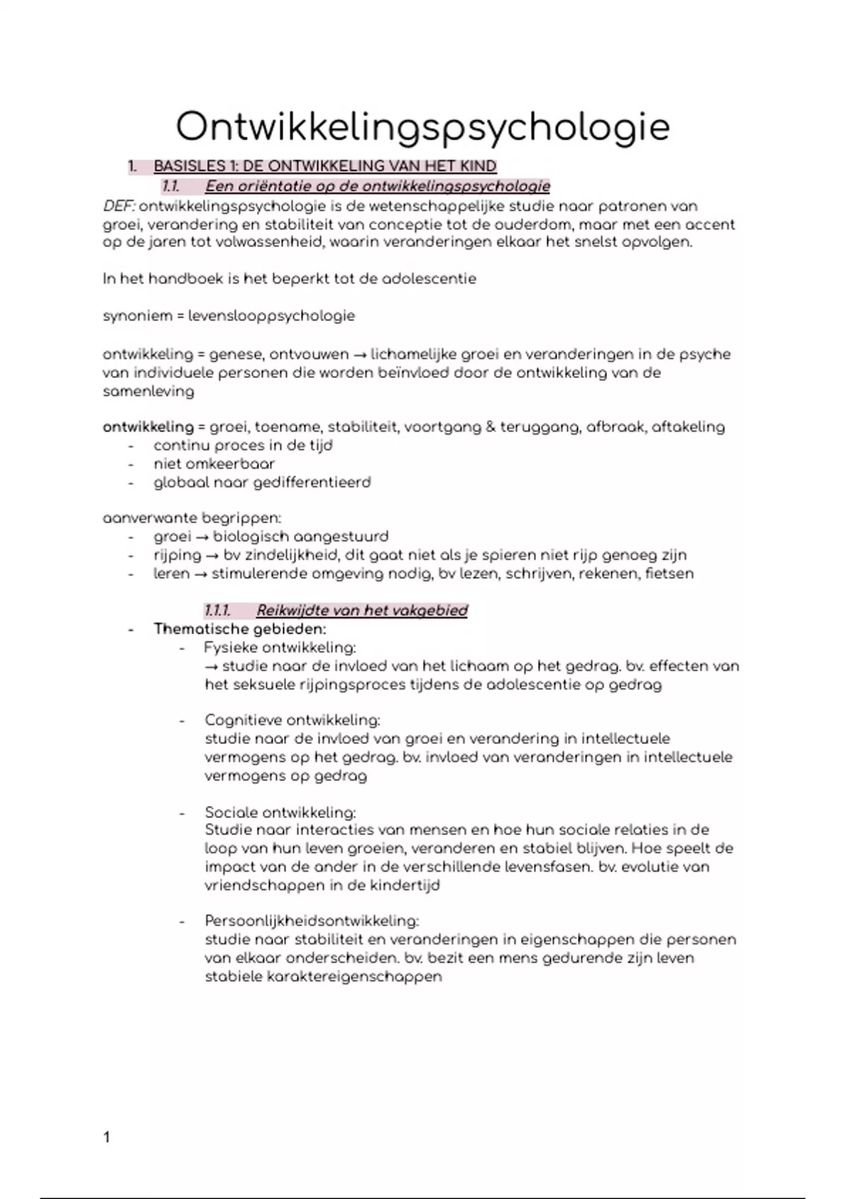 1. BASISLES 1: DE ONTWIKKELING VAN HET KIND