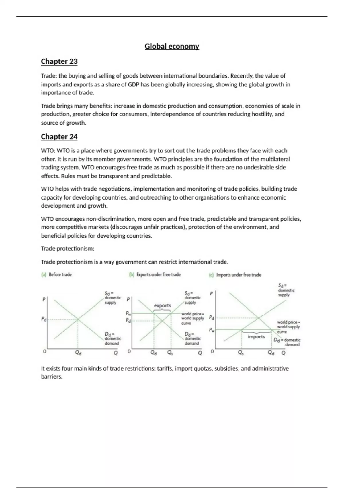 It exists four main kinds of trade restrictions: tariffs, import quotas, subsidies, and administrative