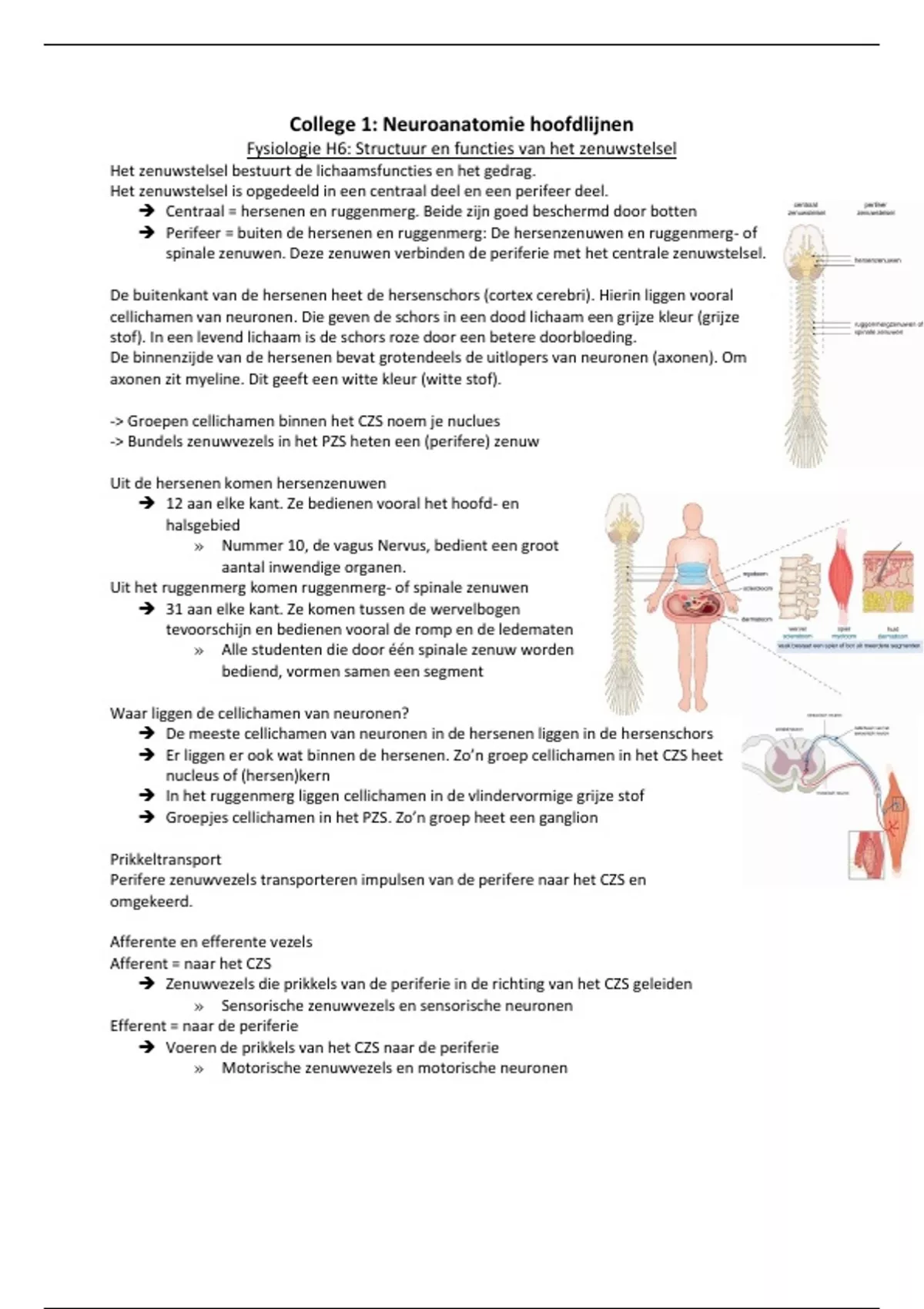 College 1: Neuroanatomie hoofdlijnen