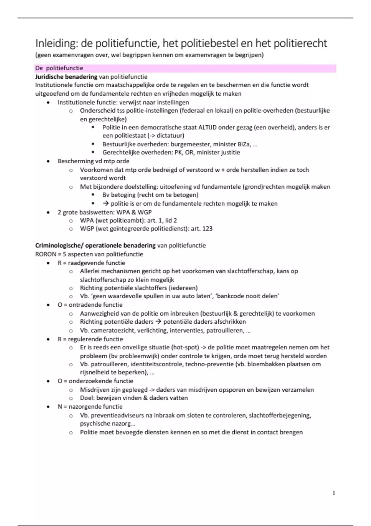 Inleiding: de politiefunctie, het politiebestel en het politierecht