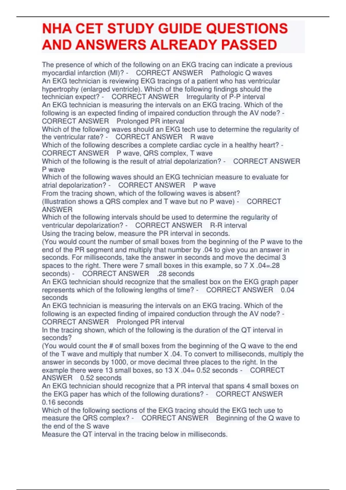 NHA CET STUDY GUIDE QUESTIONS AND ANSWERS ALREADY PASSED