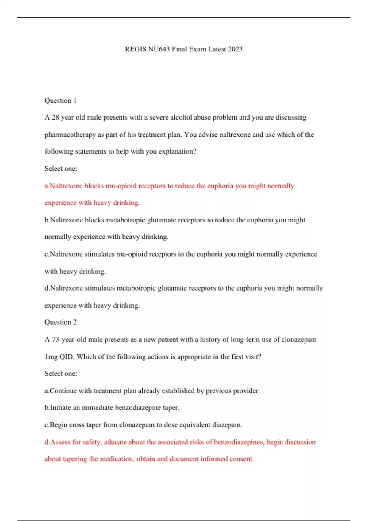 REGIS NU643 Final Exam Latest 2023 (100 Questions) REGIS NU643 Final Exam Latest 2023 (100 Questions) REGIS NU643 Final Exam Latest 2023 (100 Questions) REGIS NU643 Final Exam Latest 2023 (100 Questions) REGIS NU643 Final Exam Latest 2023 (100 Questions) REGIS NU643 Final Exam Latest 2023 (100 Questions)
