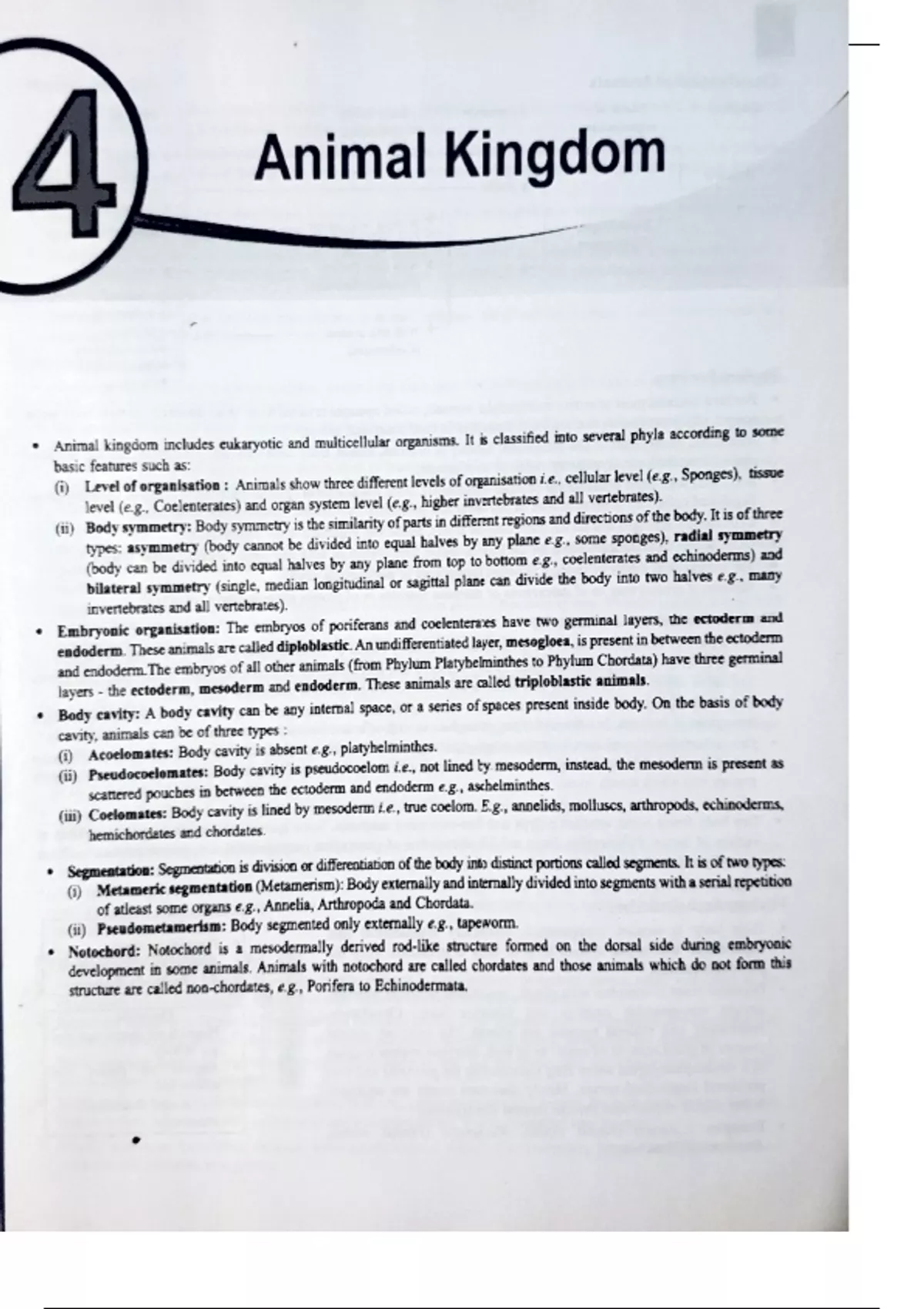 Summary of 5 pages for the course Neet at Neet (Animal kingdom)