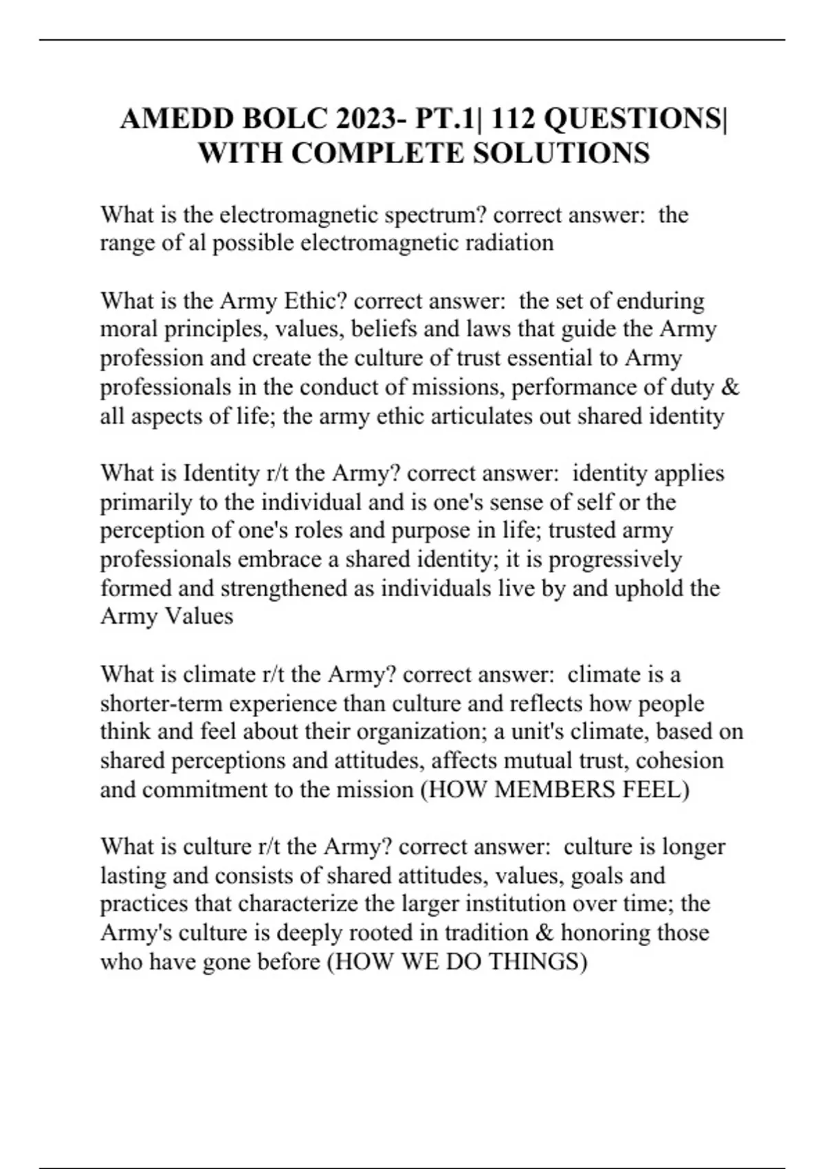 AMEDD BOLC 2023- PT.1| 112 QUESTIONS| WITH COMPLETE SOLUTIONS