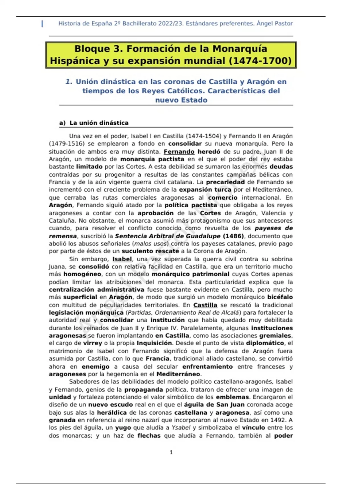 1. Unión dinástica en las coronas de Castilla y Aragón en