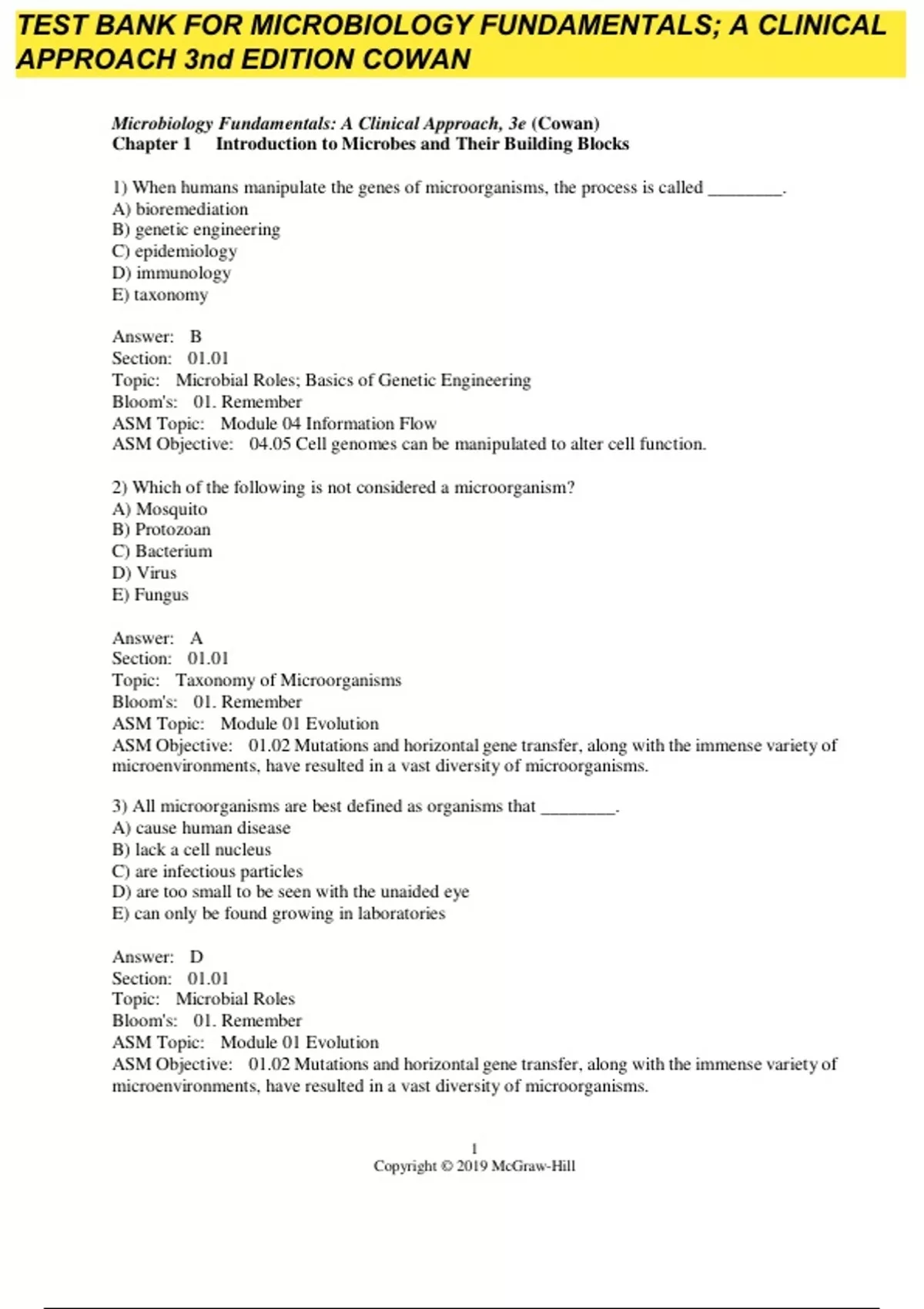 Test bank for microbiology fundamentals 3rd edition by Cowan| ALL CHAPTERS