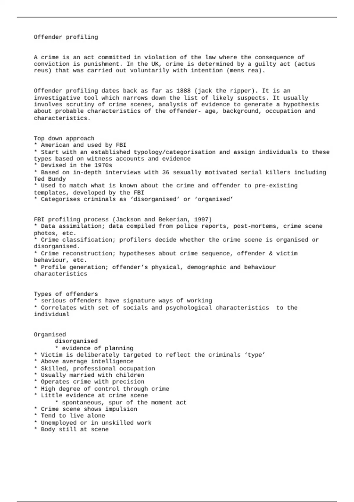 * Categorises criminals as ‘disorganised’ or ‘organised’