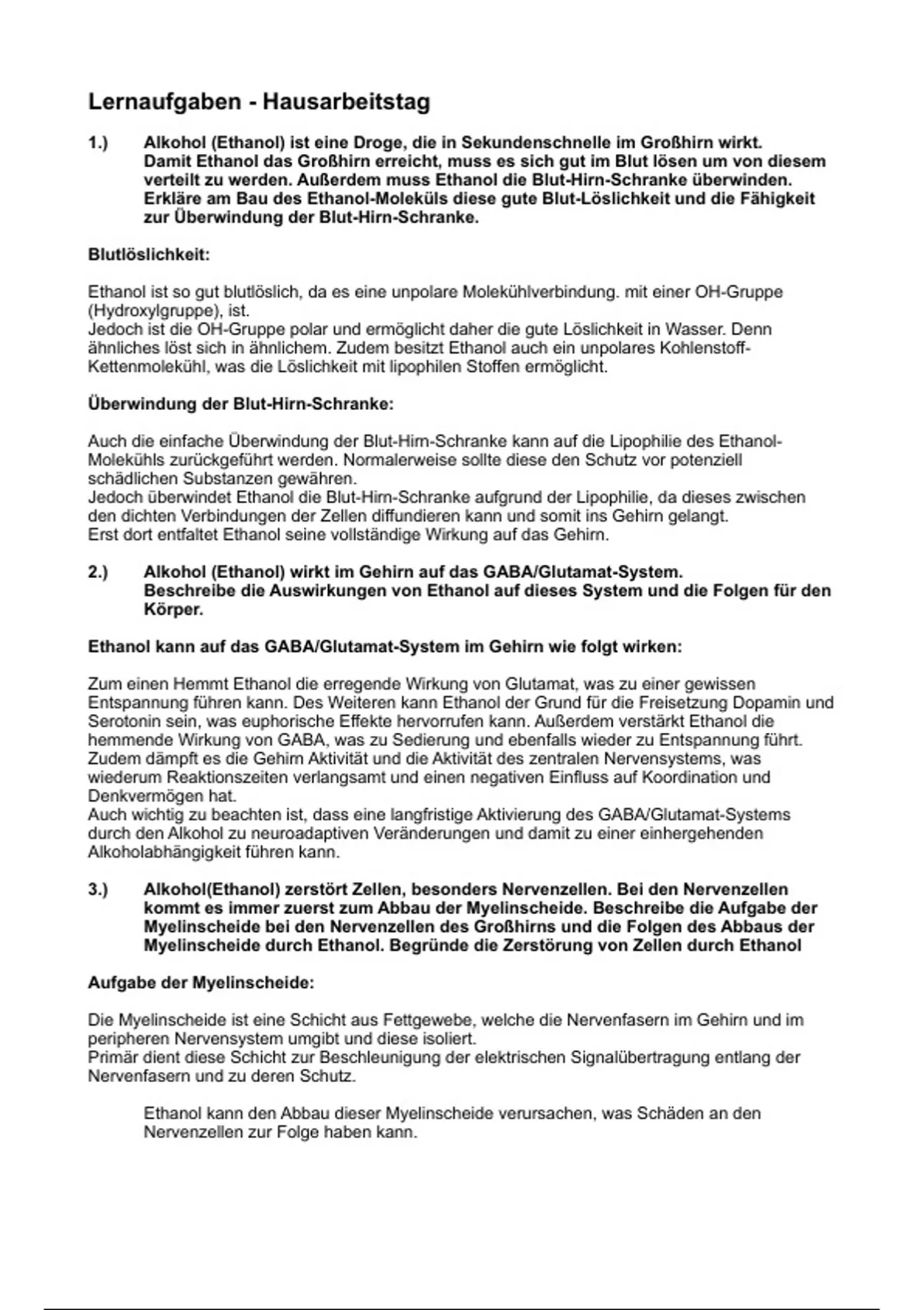 Myelinscheide durch Ethanol. Begründe die Zerstörung von Zellen durch Ethanol