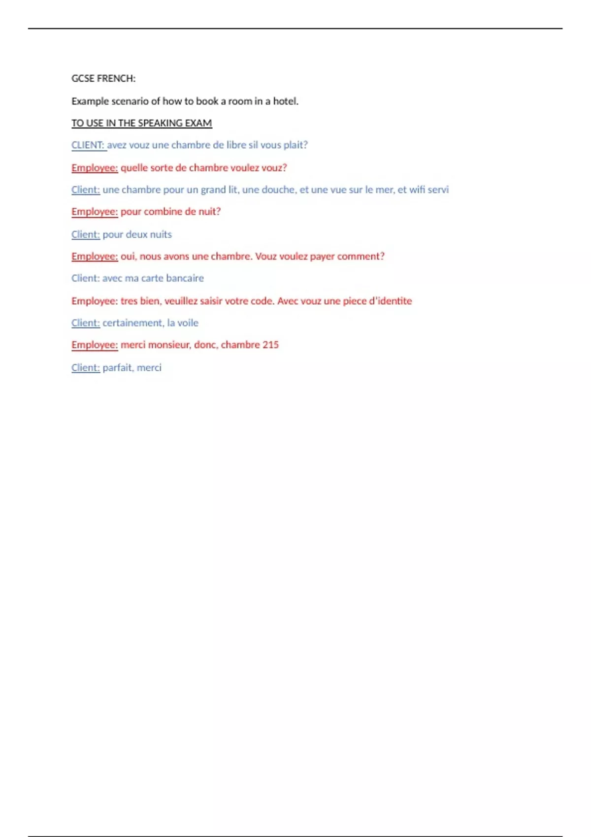 Employee: oui, nous avons une chambre. Vouz voulez payer comment?