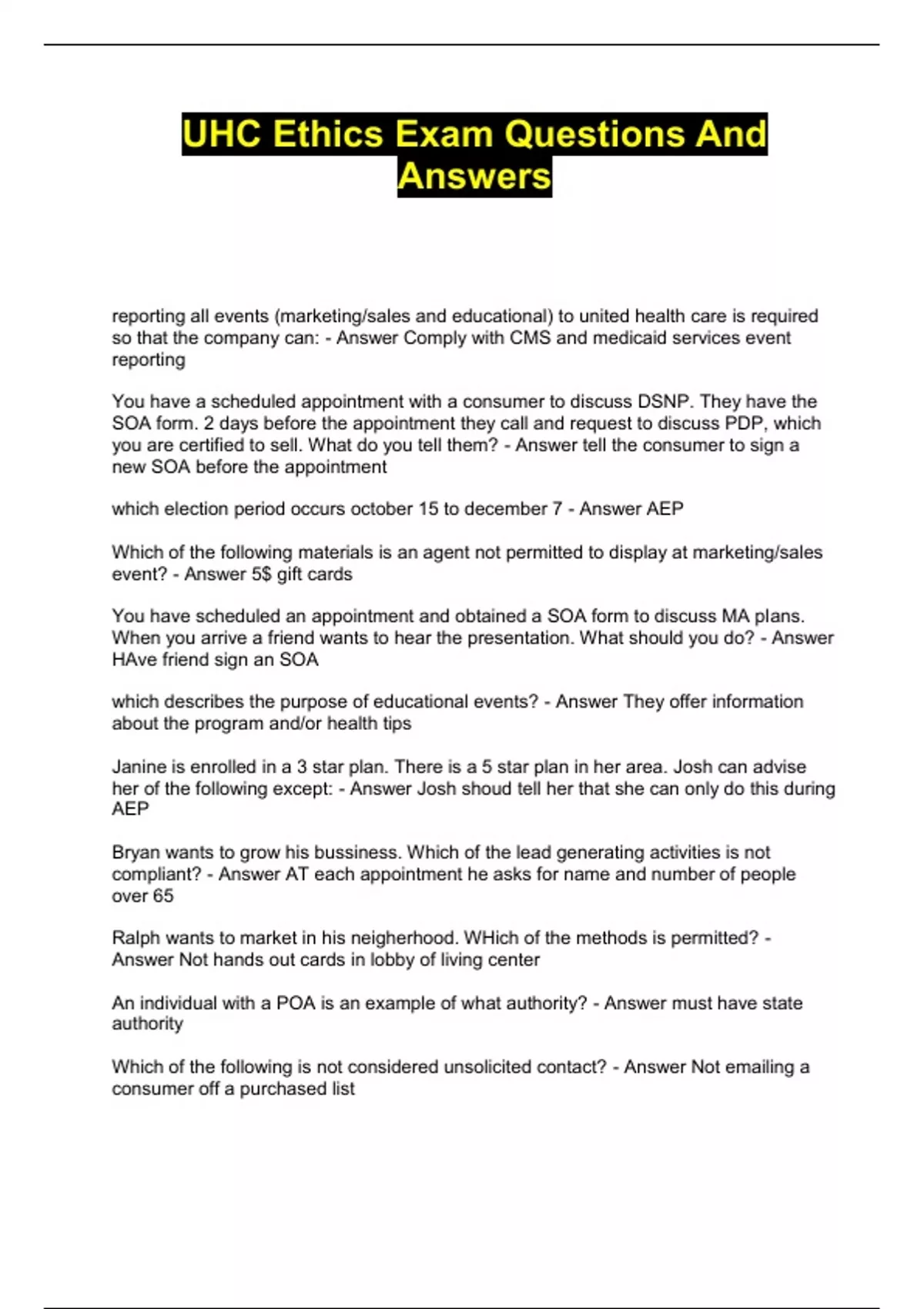 UHC ETHICS PACKAGED EXAMS @ 2023