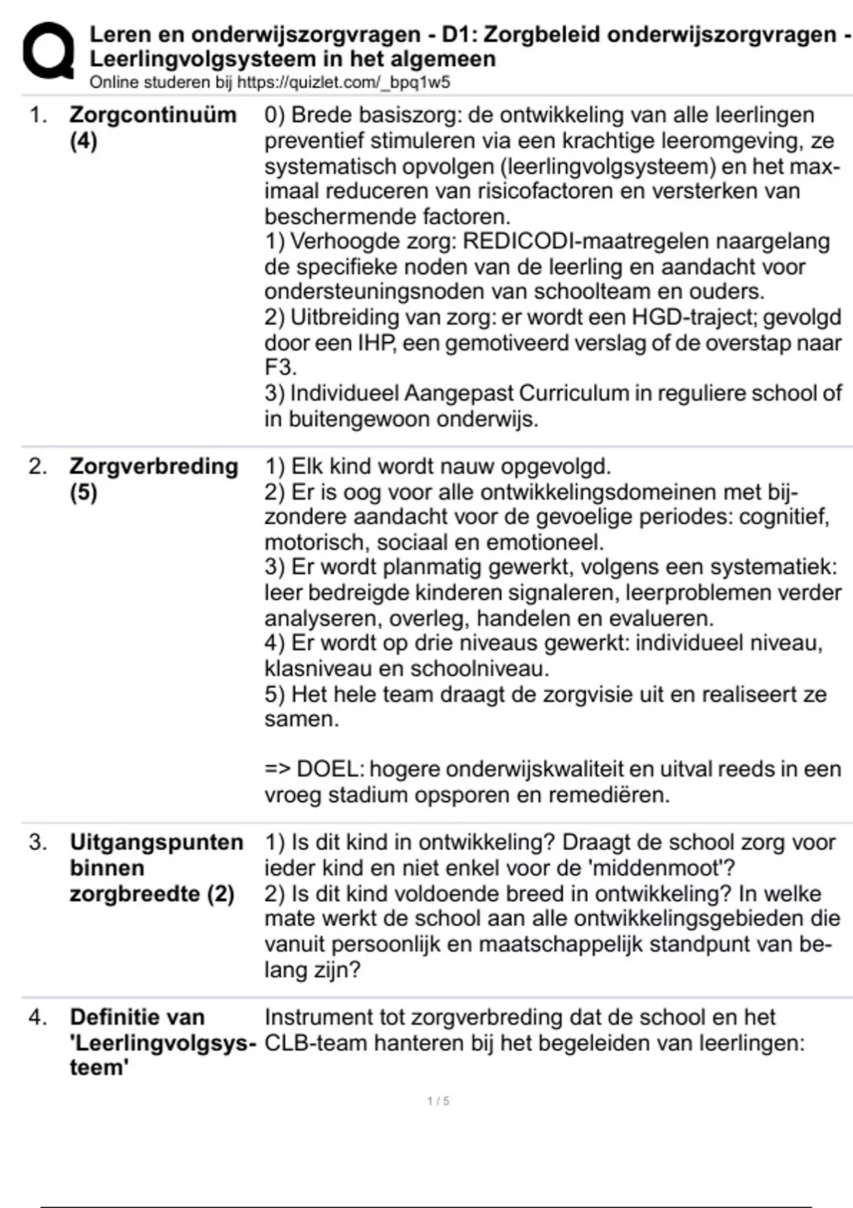 Leren en onderwijszorgvragen - D1: Zorgbeleid onderwijszorgvragen -
