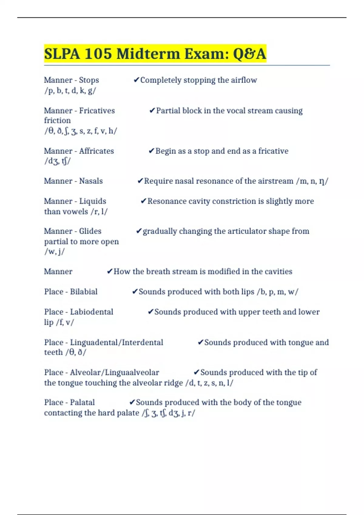 SLPA 105 Midterm Exam: Q&A