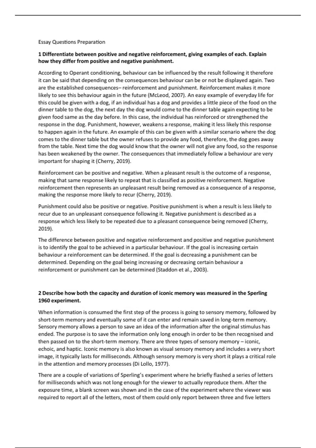 Essay Questions Preparation