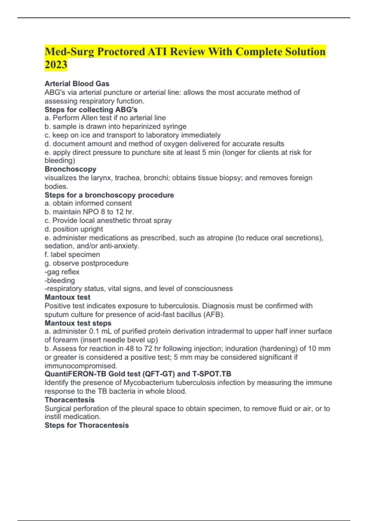 Steps for Thoracentesis