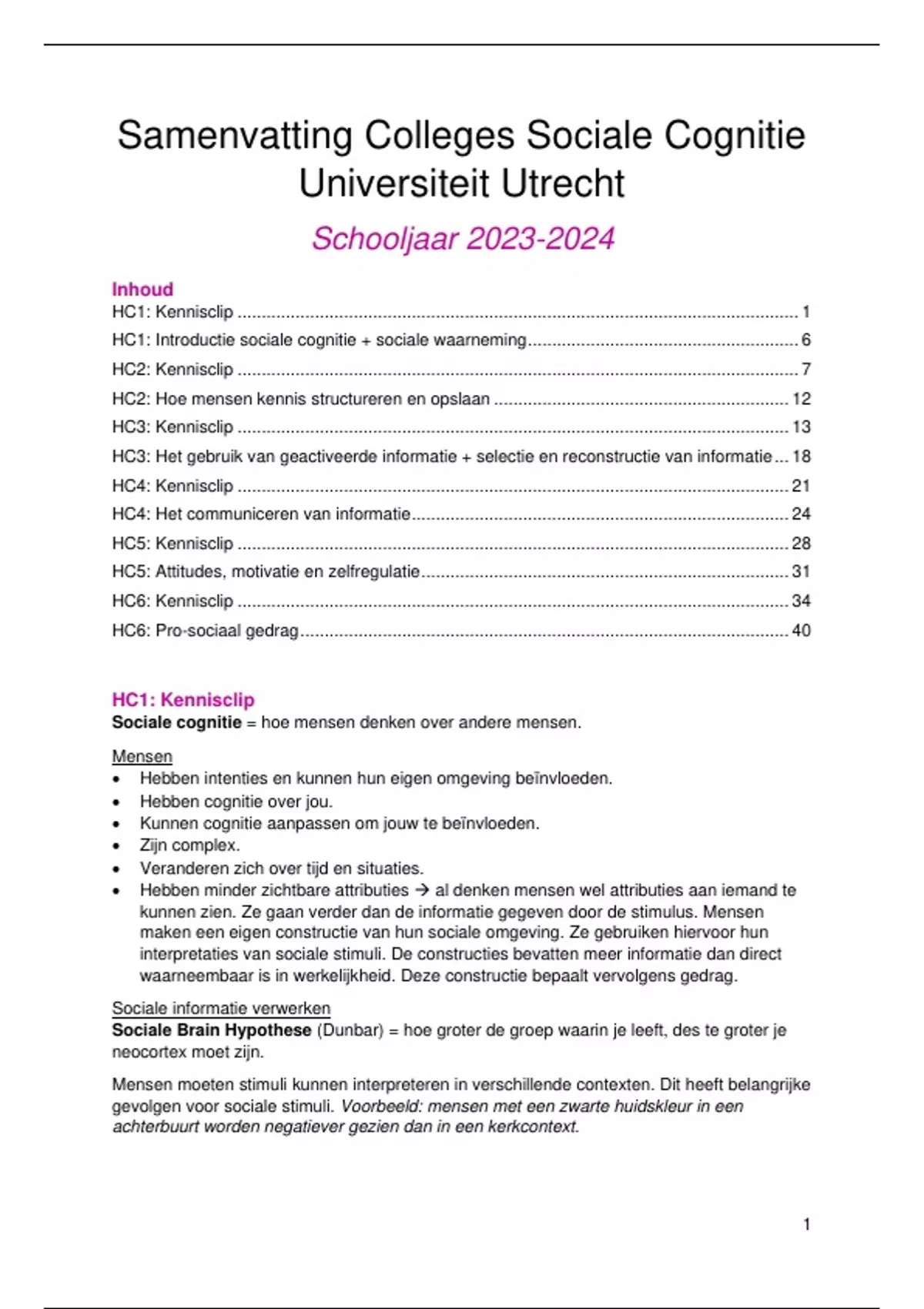 HC1: Introductie sociale cognitie + sociale waarneming.........................................................6