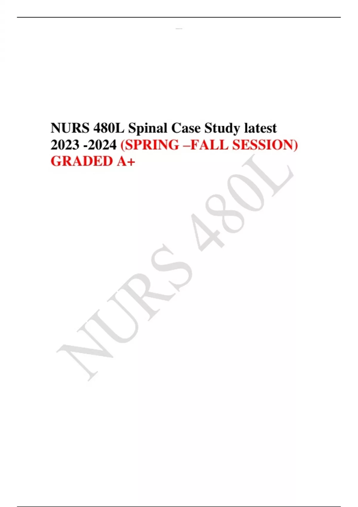NURS 480L Spinal Case Study latest (SPRING –FALL SESSION) GRADED A+