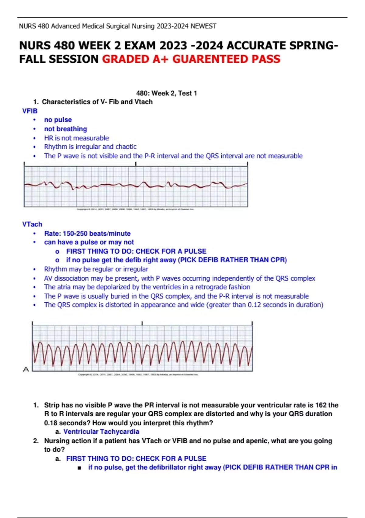 NURS 480 WEEK 2 EXAM ACCURATE SPRINGFALL SESSION GRADED A+ GUARENTEED PASS