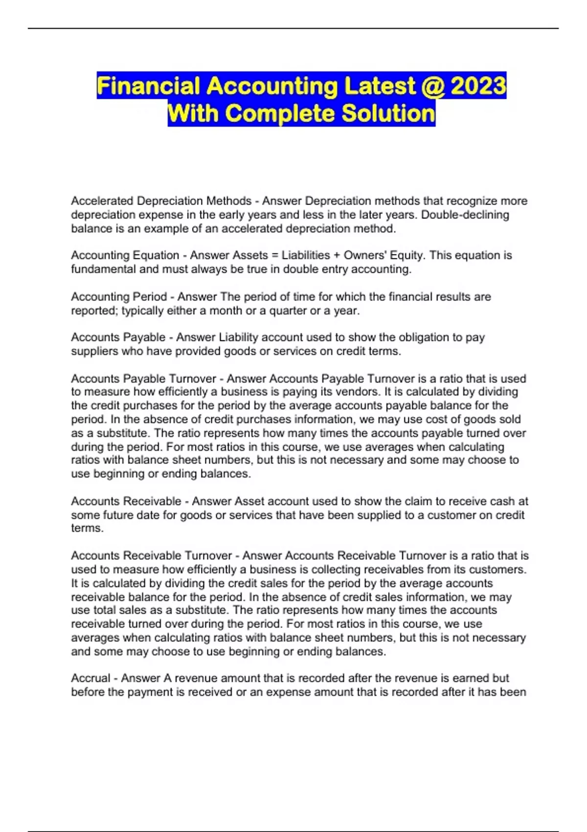 Financial Accounting Latest @ 2023 With Complete Solution