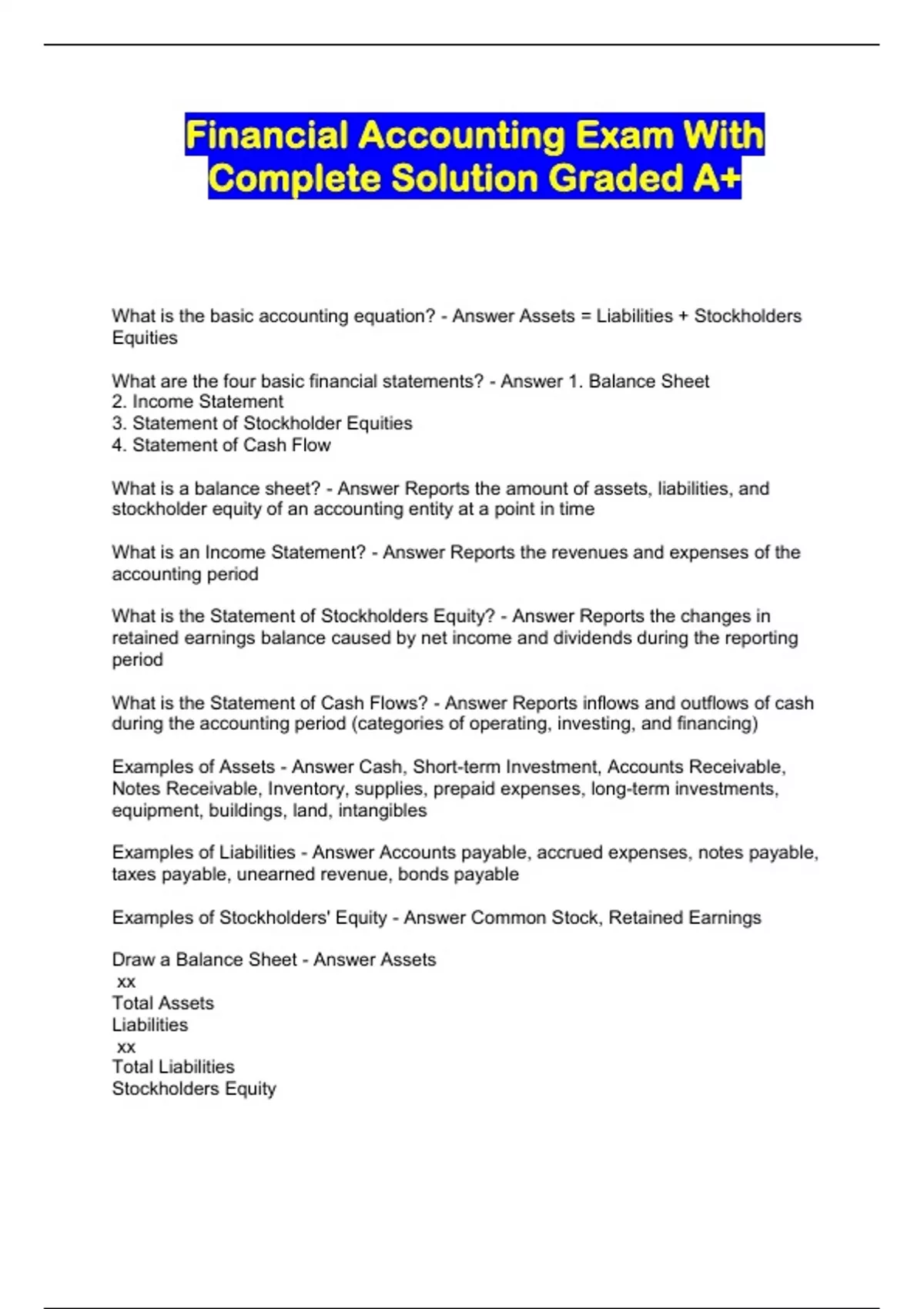 ALL FINANCIAL ACCOUNTING PACKAGED EXAMS A GRADED (100% PASS GUARANTEED)