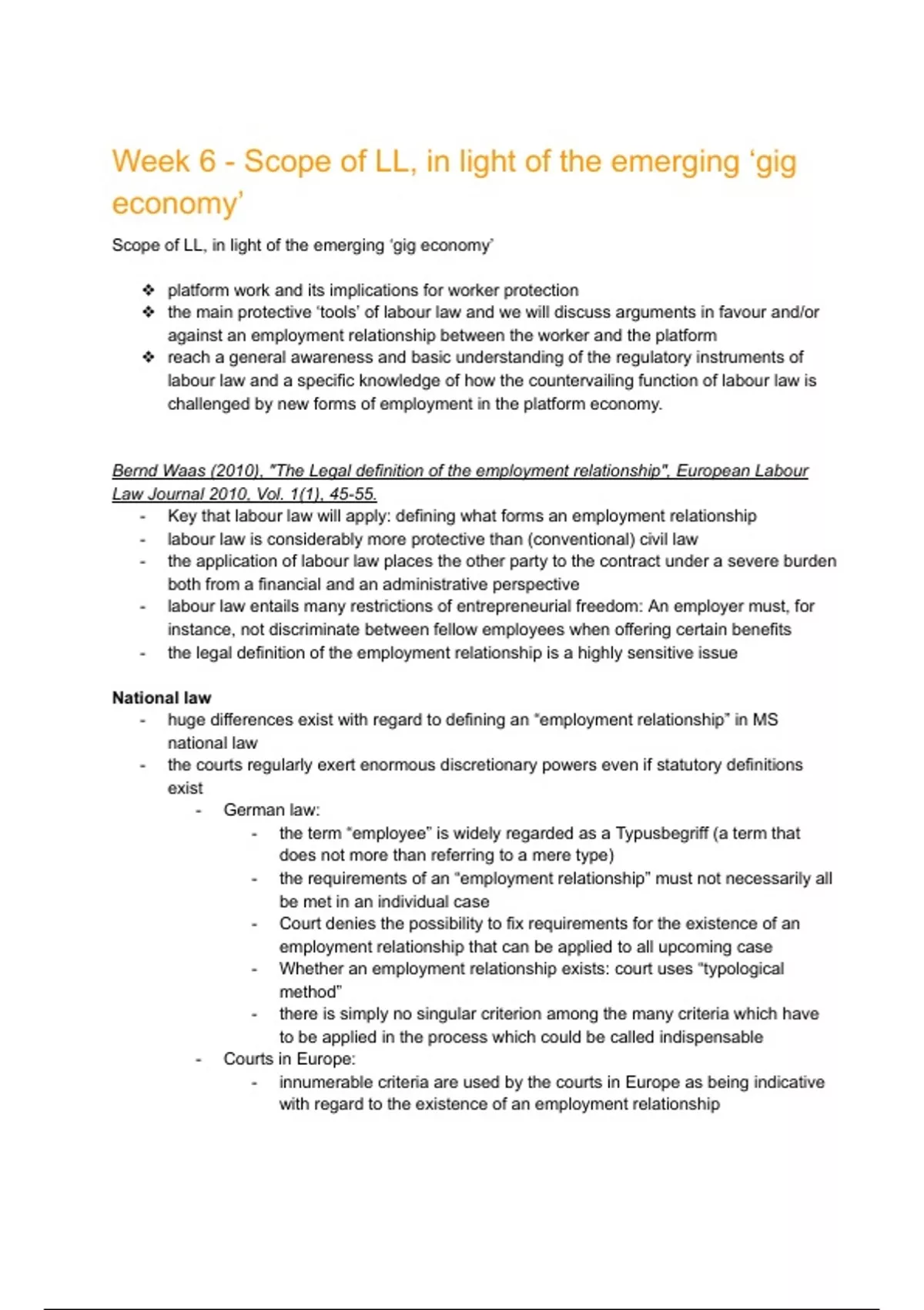 Bernd Waas (2010), "The Legal definition of the employment relationship", European Labour