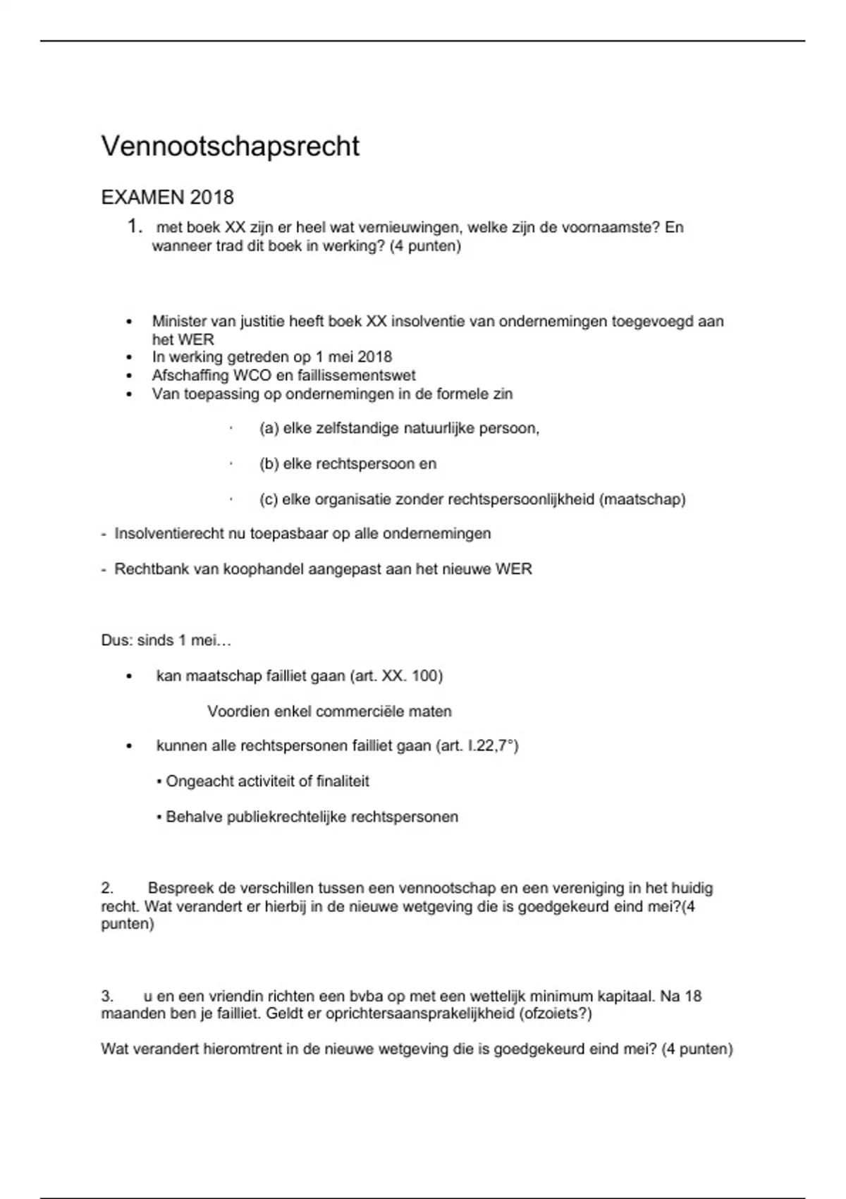 2. Bespreek de verschillen tussen een vennootschap en een vereniging in het huidig