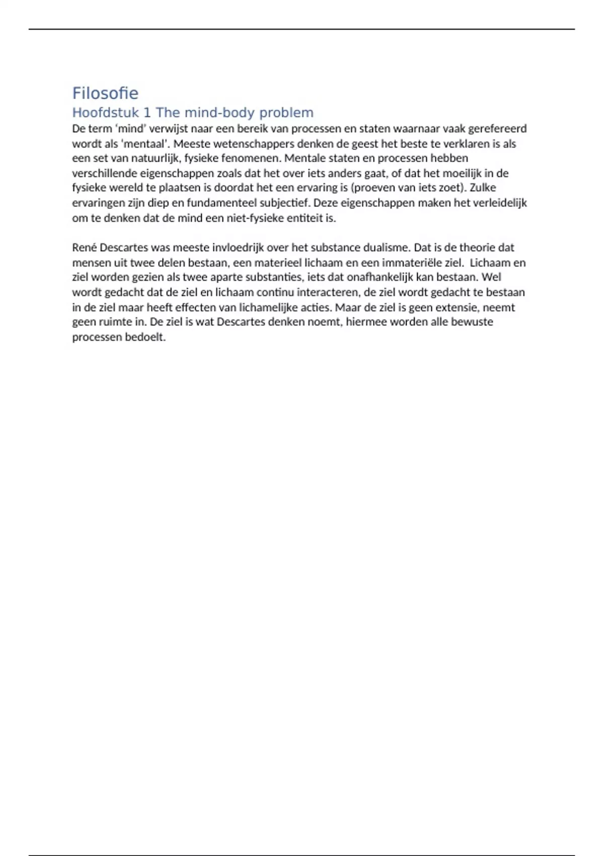 geen ruimte in. De ziel is wat Descartes denken noemt, hiermee worden alle bewuste
