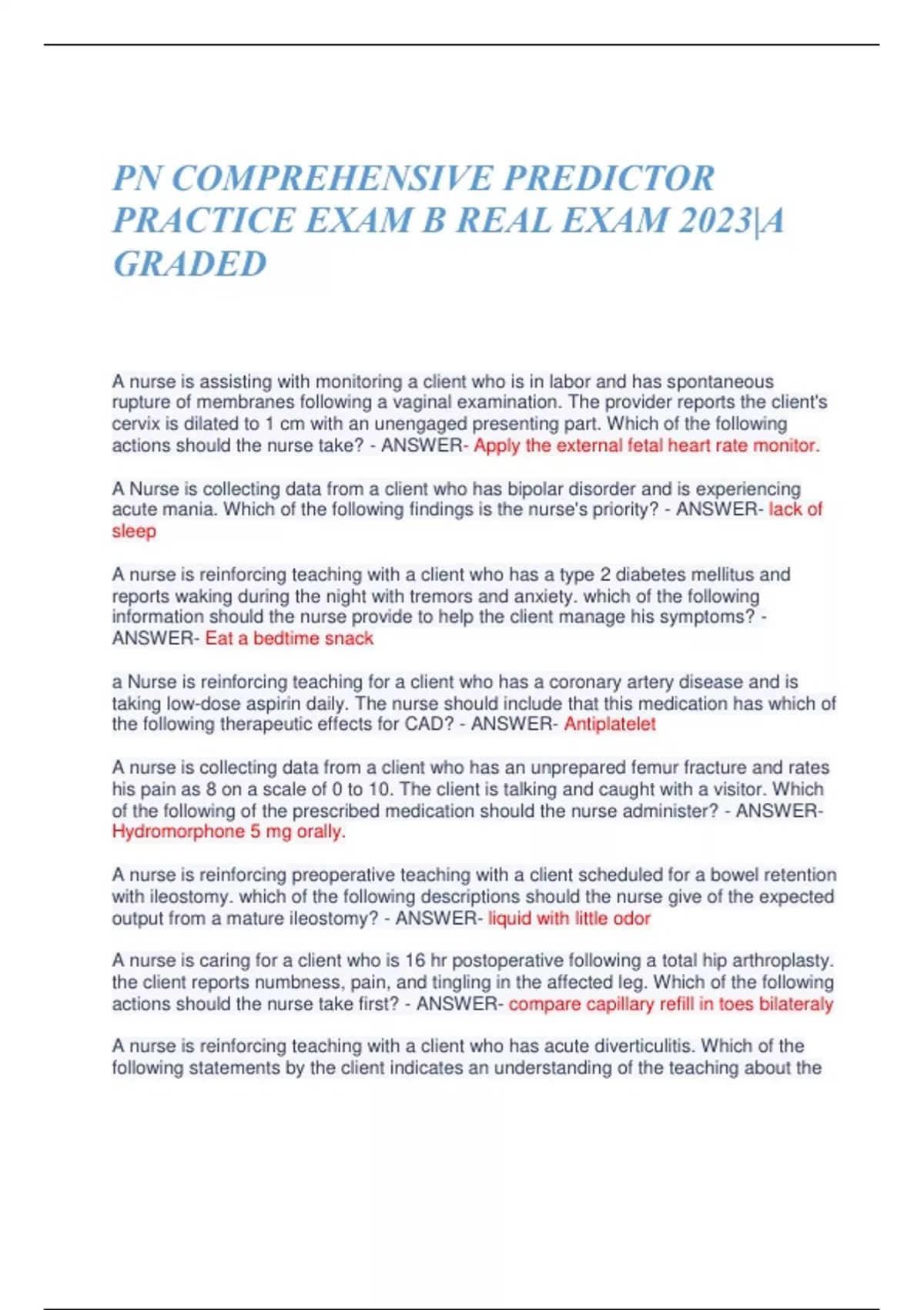 PN COMPREHENSIVE PREDICTOR PRACTICE EXAM B REAL EXAM 2023|A GRADED