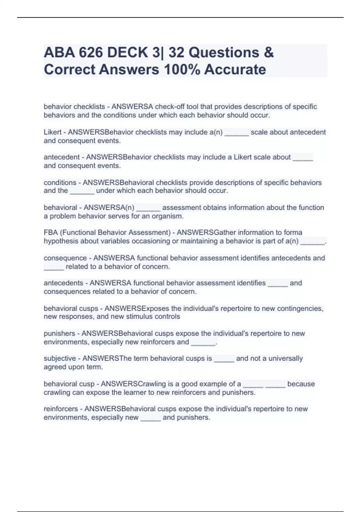ABA 626 DECK 3| 32 Questions & Correct Answers 100% Accurate
