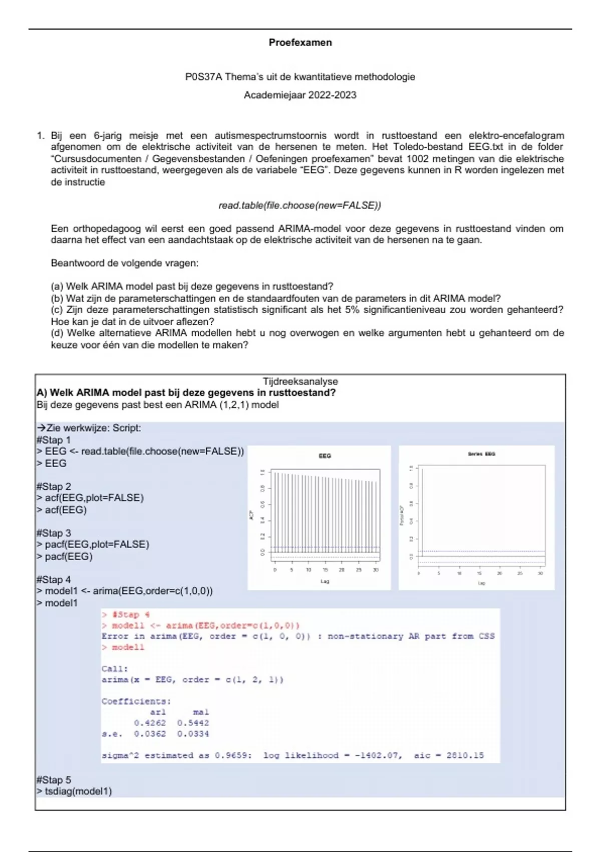 Een orthopedagoog wil eerst een goed passend ARIMA-model voor deze gegevens in rusttoestand vinden om