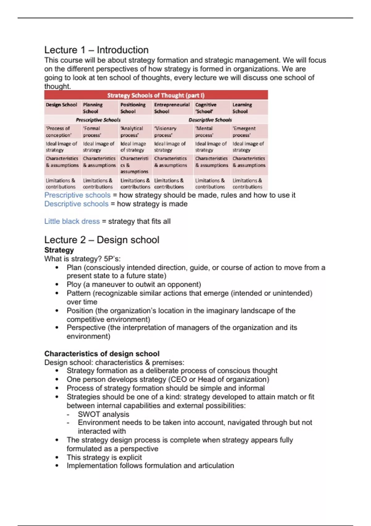 Prescriptive schools = how strategy should be made, rules and how to use it