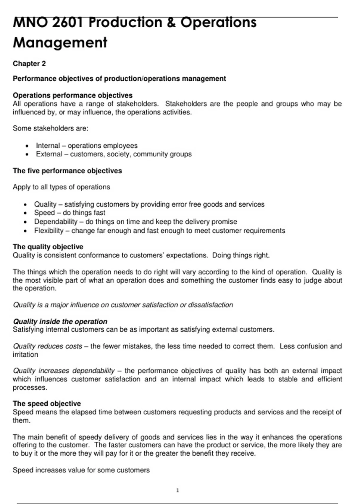 The things which the operation needs to do right will vary according to the kind of operation. Quality is