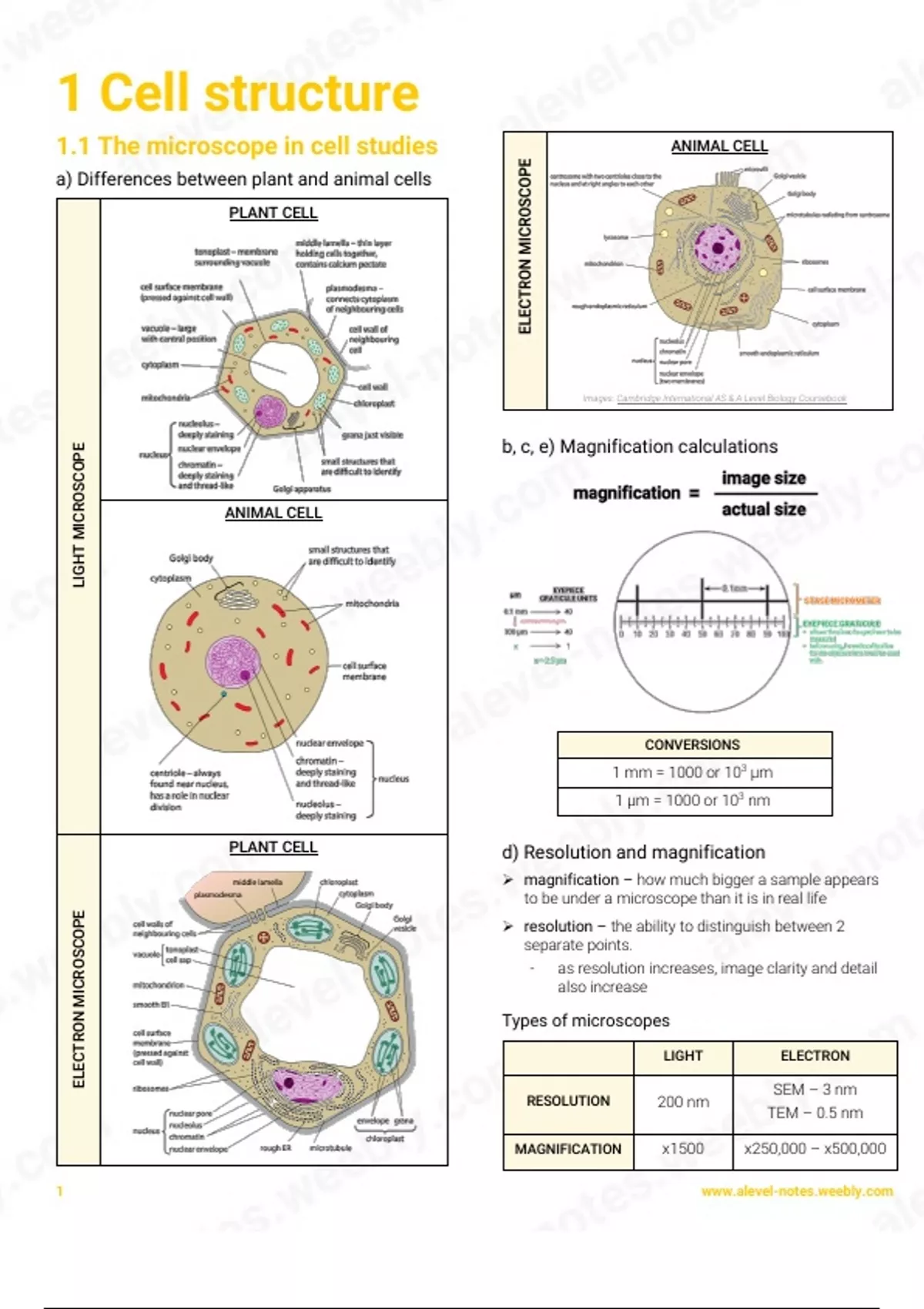 1.1 The microscope in cell studies ANIMAL CELL