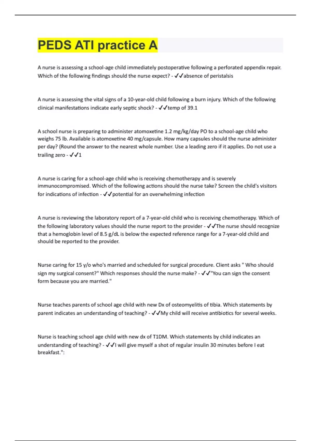 PEDS ATI practice A| Questions with 100% Correct Answers | Verified