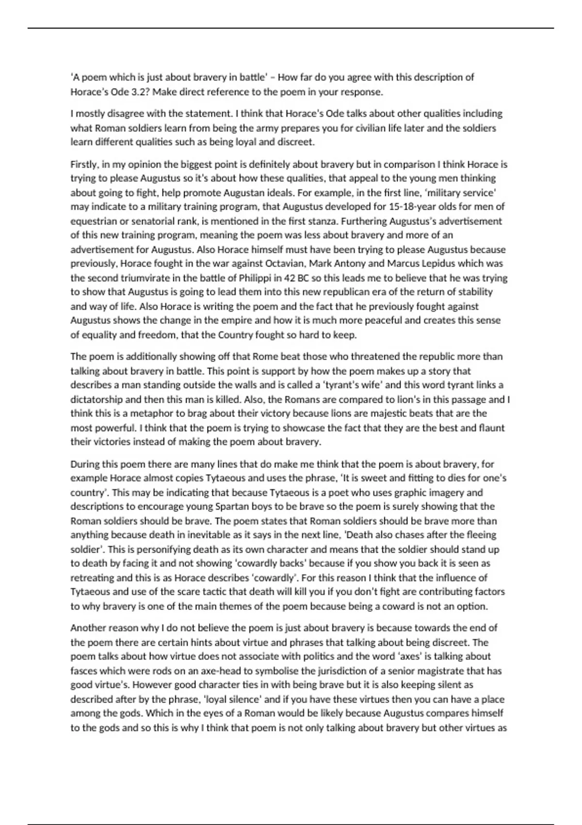 I mostly disagree with the statement. I think that Horace’s Ode talks about other qualities including
