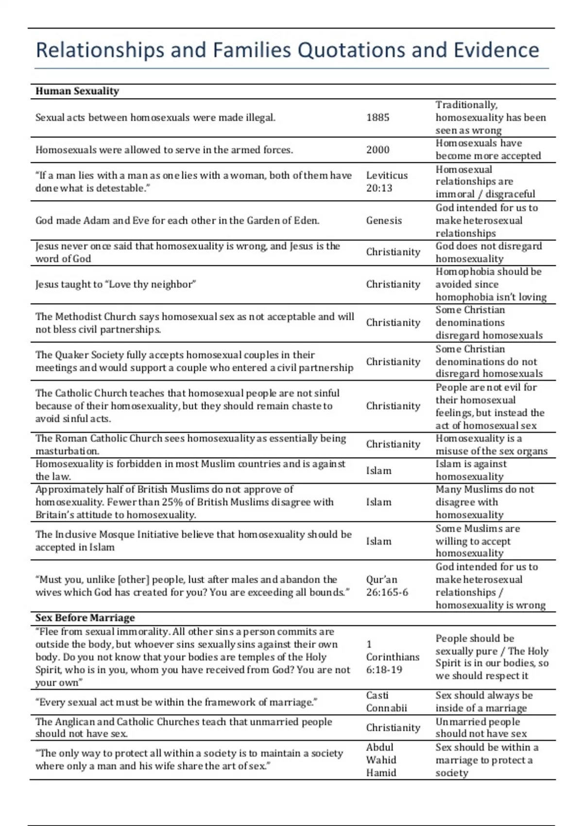 Summary AQA GCSE Religious Education - Relationships and Families: Quotes