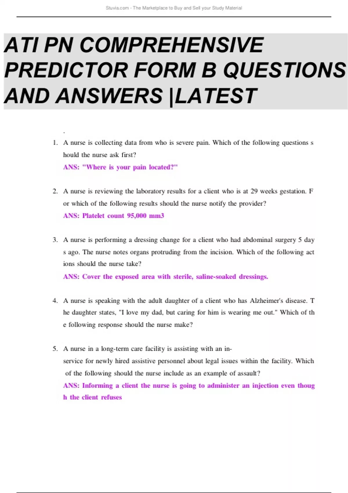 ATI PN COMPREHENSIVE PREDICTOR FORM B QUESTIONS & ANSWERS; Latest Updated