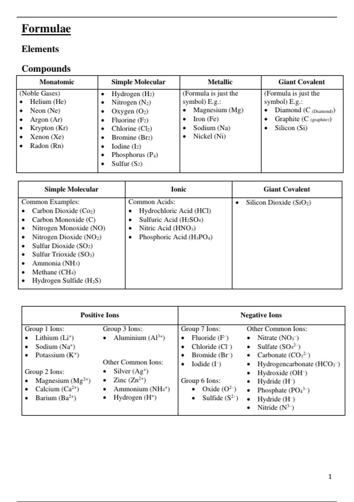 (Noble Gases) • Hydrogen (H2) (Formula is just the (Formula is just the
