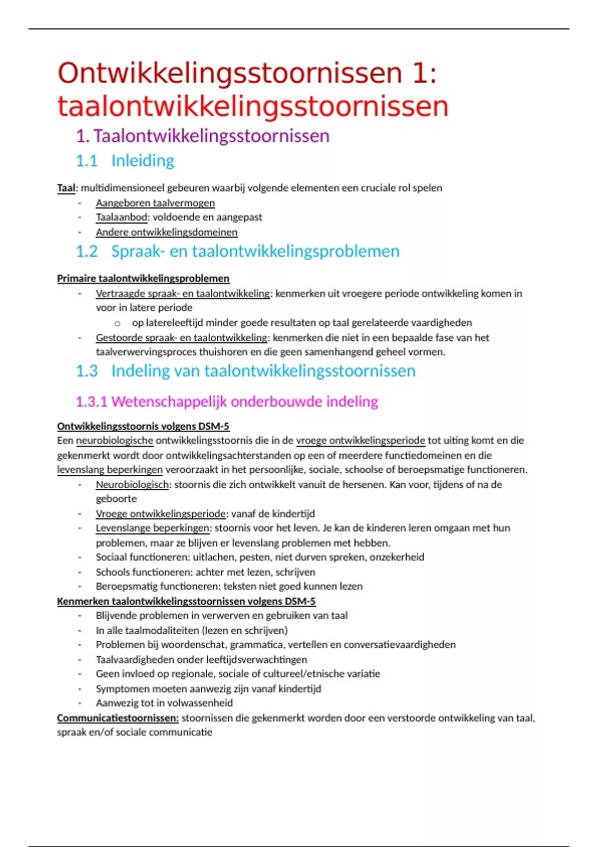 Dit is een samenvatting van het olod ontwikkelingsstoornissen 1, van het vak taalontwikkelingsstoornissen.