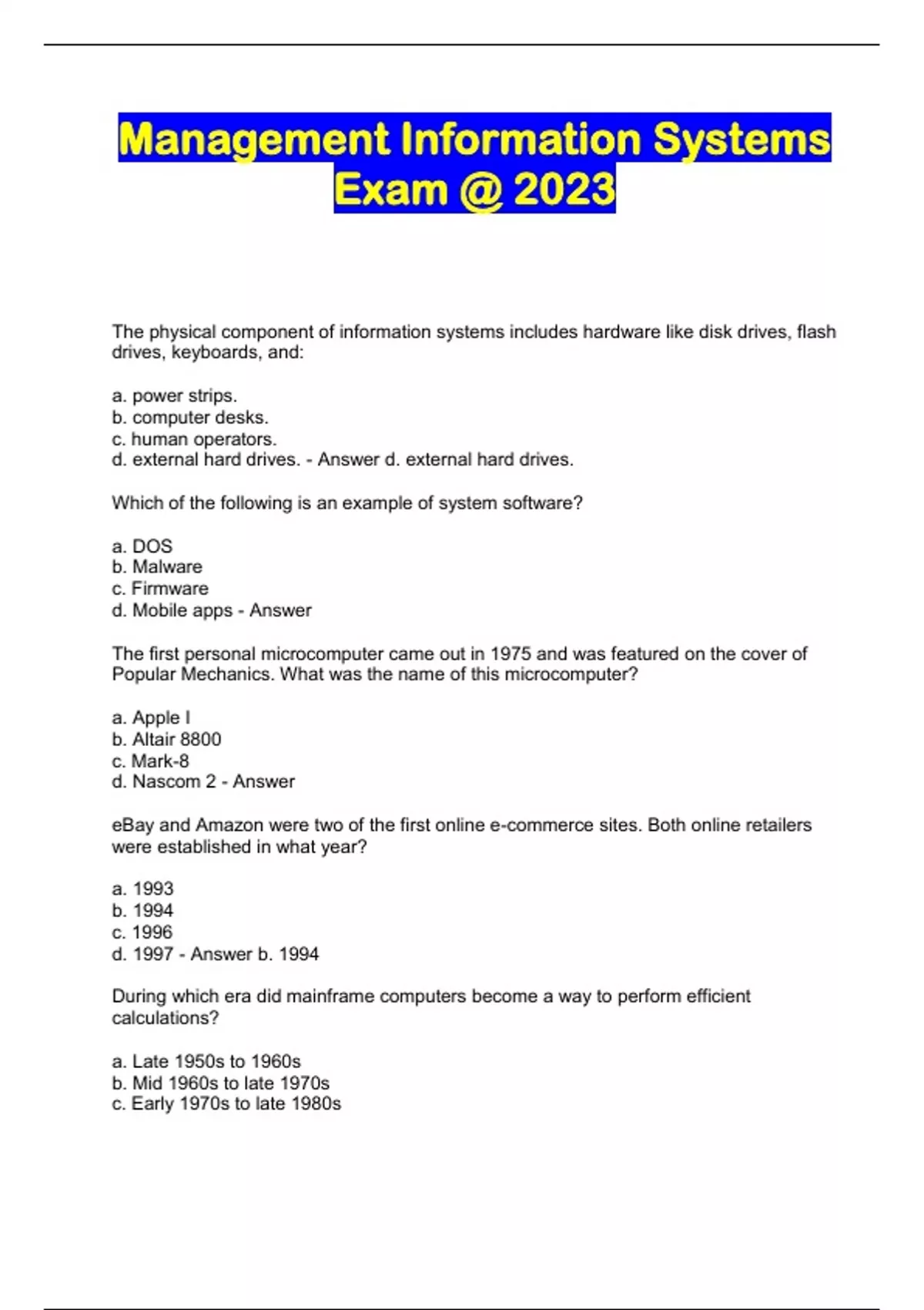 MANAGEMENT INFORMATION SYSTEMS PACKAGED EXAMS @ 2023