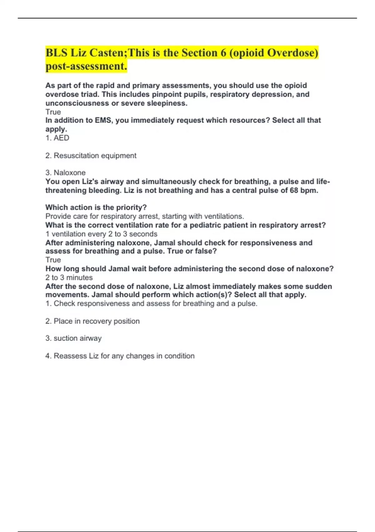 threatening bleeding. Liz is not breathing and has a central pulse of 68 bpm.