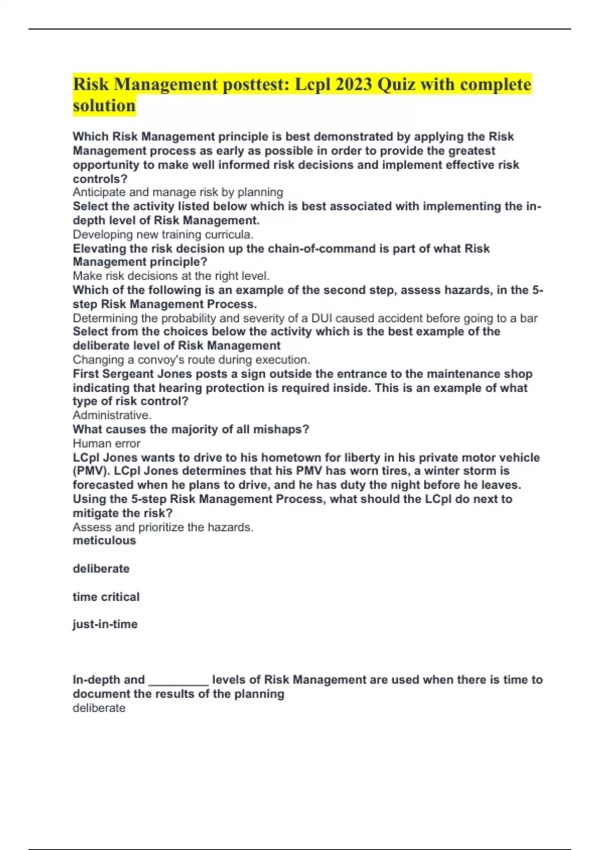 Using the 5-step Risk Management Process, what should the LCpl do next to