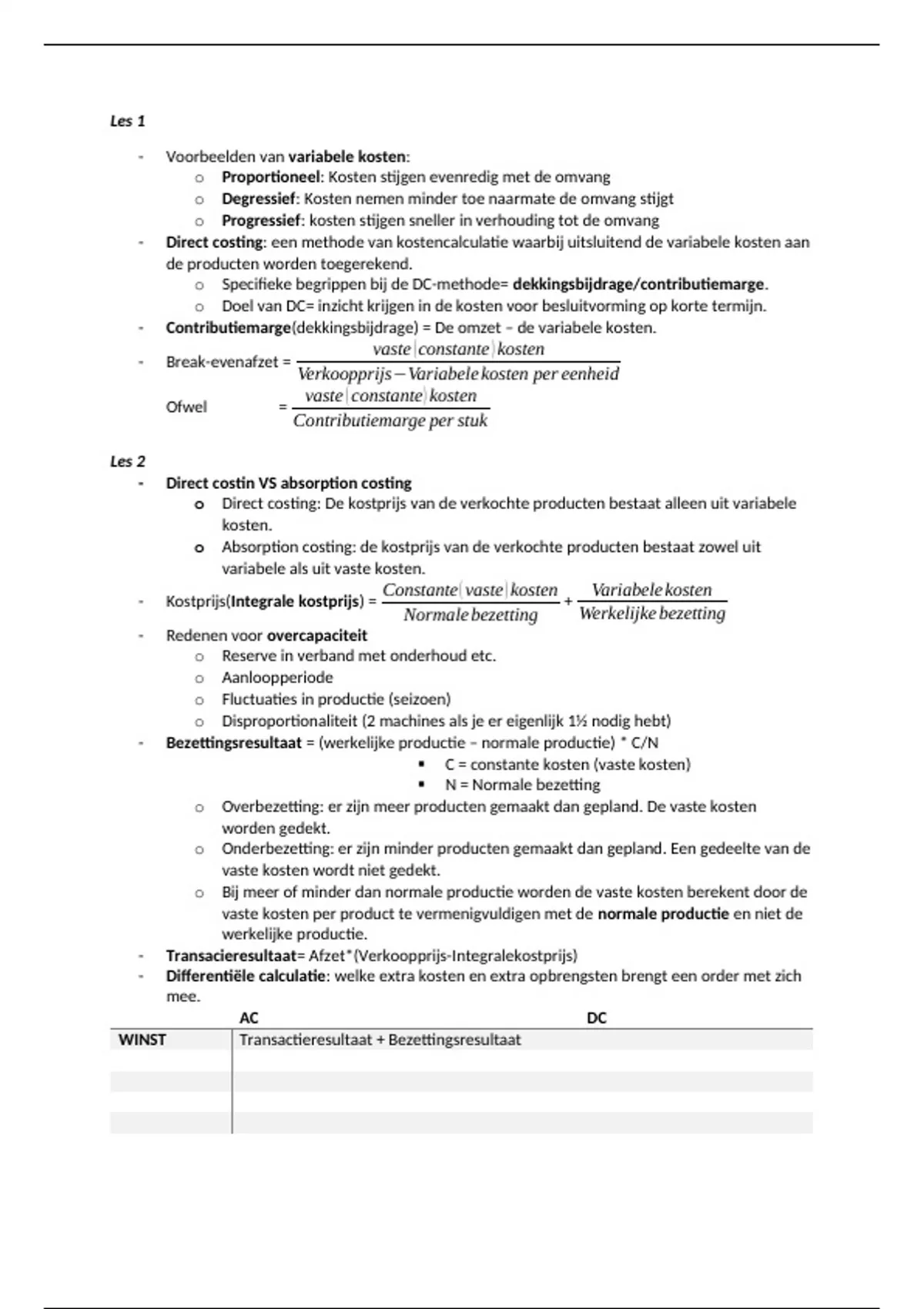 o Direct costing: De kostprijs van de verkochte producten bestaat alleen uit variabele