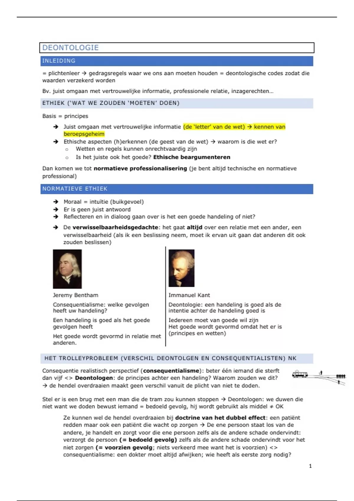 HET TROLLEYPROBLEEM (VERSCHIL DEONTOLGEN EN CONSEQUENTIALISTEN) NK