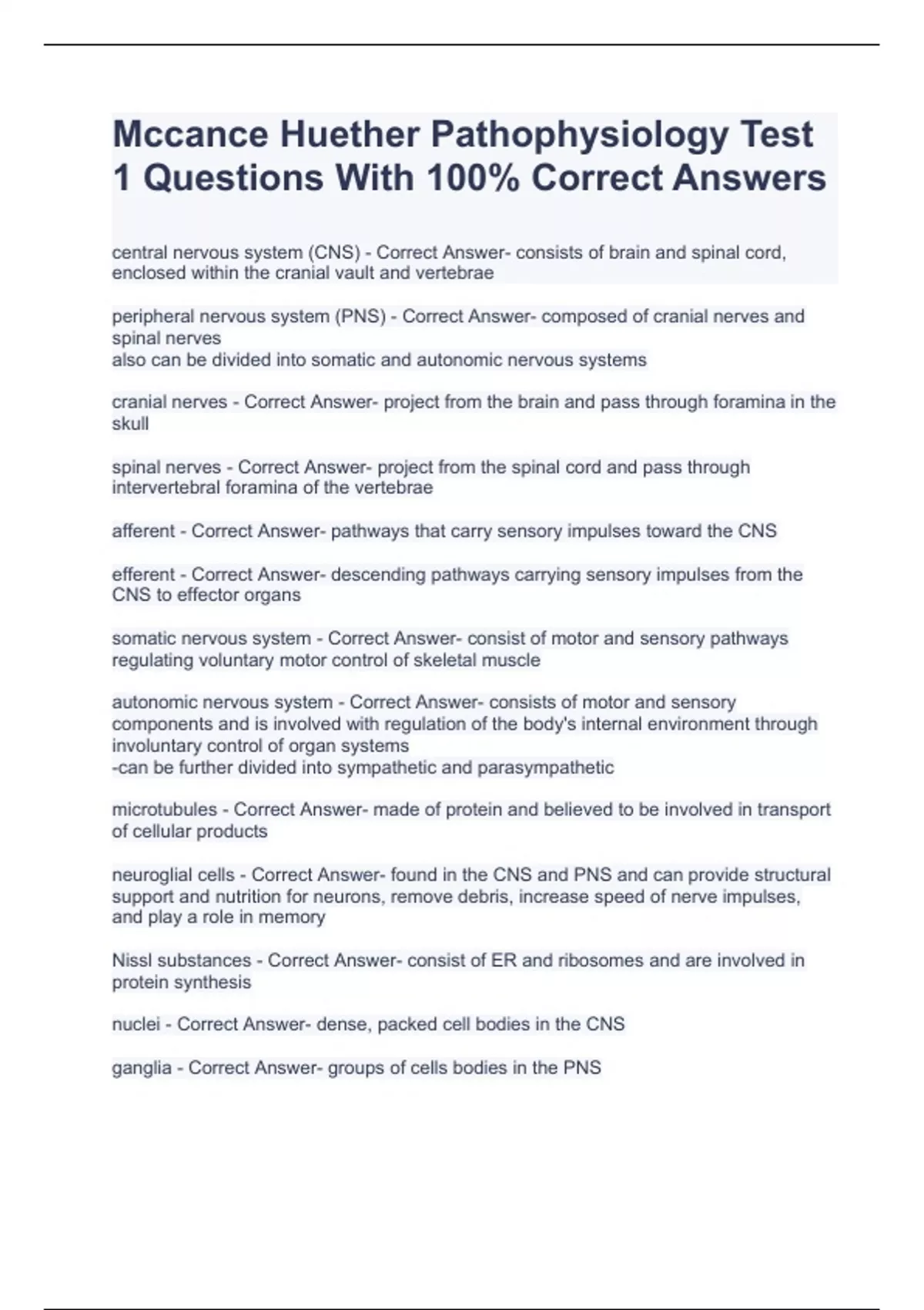 Mccance Huether Pathophysiology Test 1 Questions With 100% Correct Answers.docx