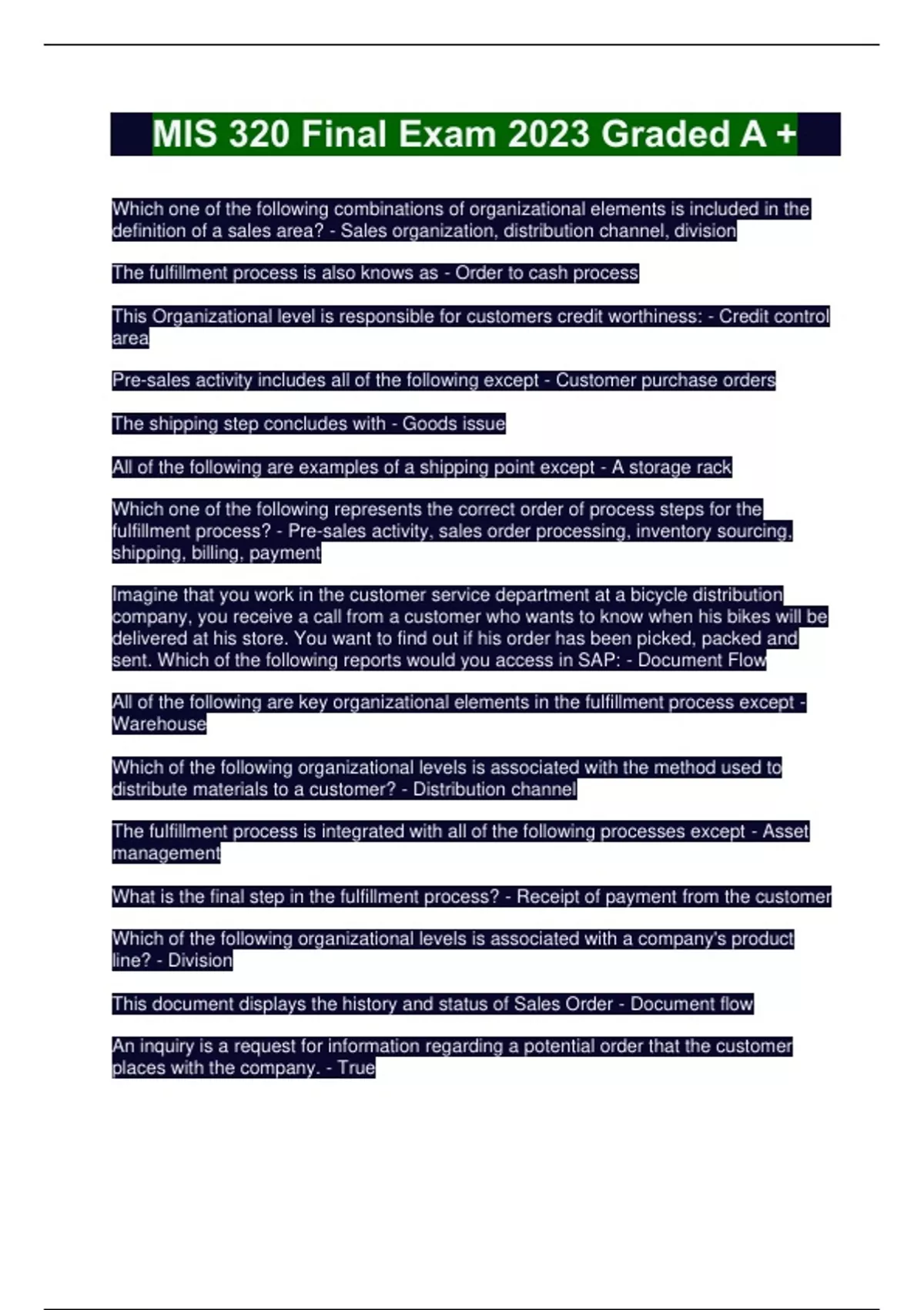MIS 320 Final Exam 2023 Graded A +