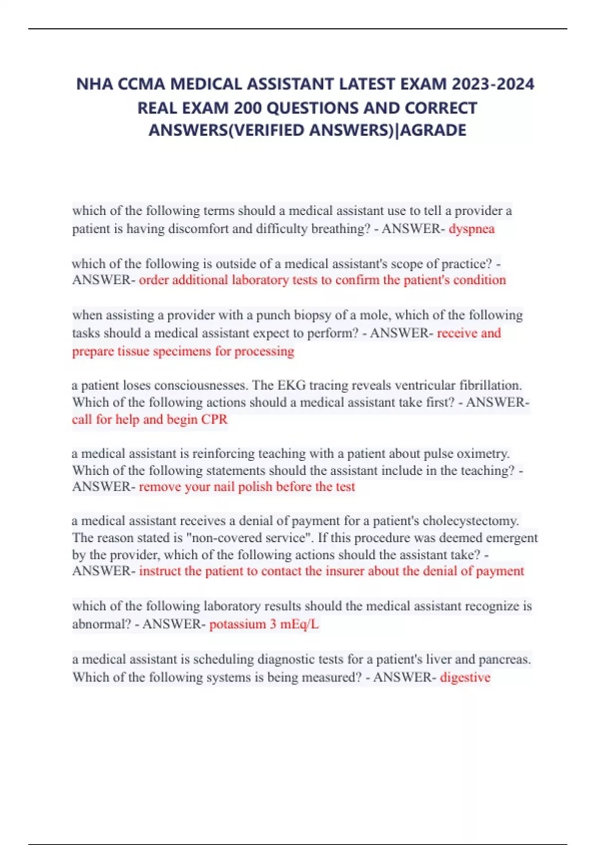 completely answered NHA CCMA Medical Assistant Latest Exam 2023.