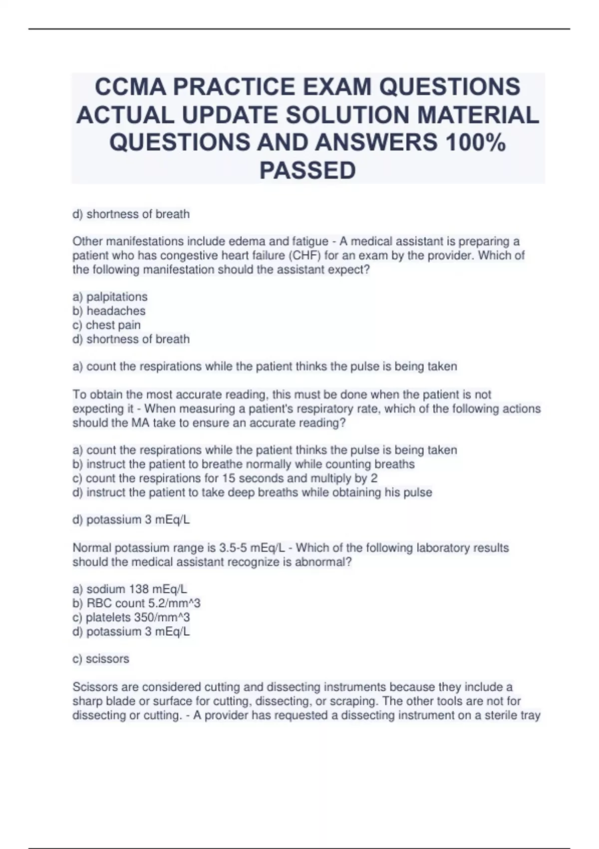 2023 CCMA Practice Exam Questions Actual Answers