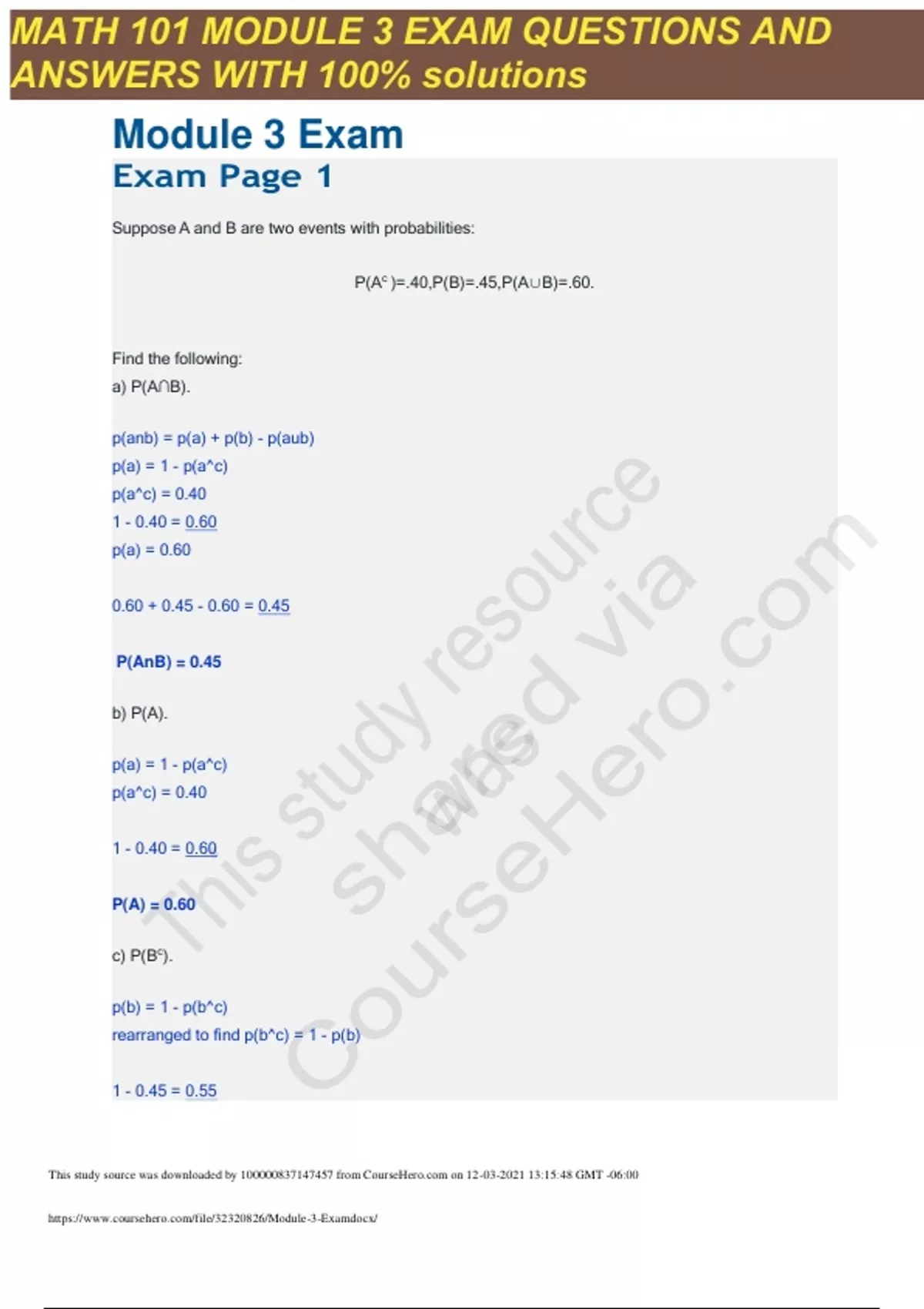 MATH 101 MODULE 3 EXAM QUESTIONS AND ANSWERS WITH 100% solutions