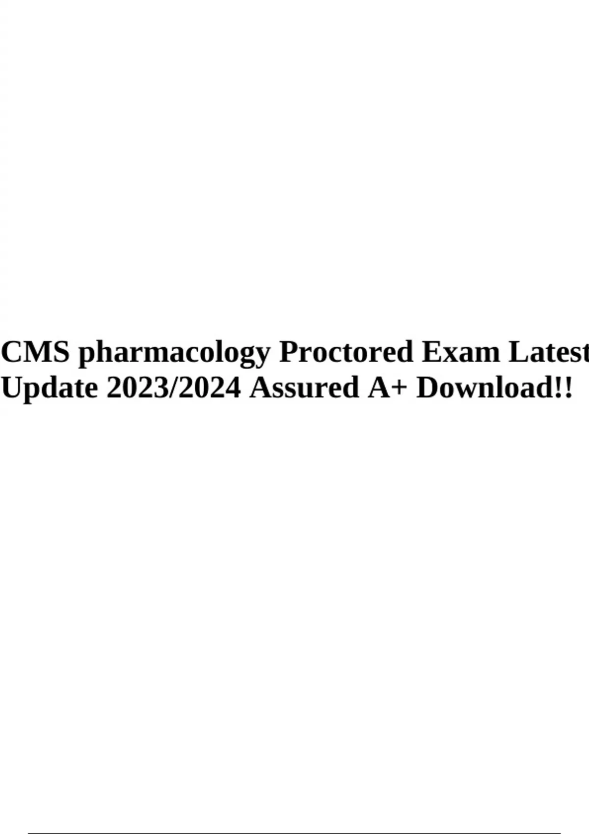 CMS pharmacology Proctored Exam Latest Update 2023/2024 Assured A+ Download!!